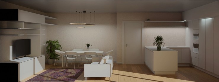 2. Spazialità fluida: La disposizione aperta degli spazi invita a una transizione armoniosa tra la zona cucina, il soggiorno e la zona pranzo, garantendo un’esperienza di vita contemporanea e dinamica.